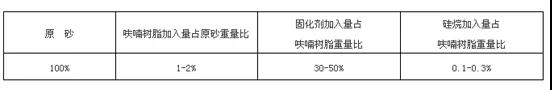 原砂+固化劑(對甲苯磺酸水(shuǐ)溶液)-(120~180S)-樹(shù)脂+矽烷-(60~90S)-出砂
