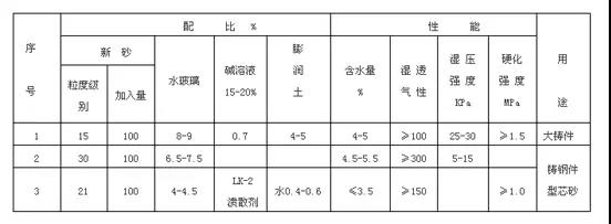 水(shuǐ)玻璃CO2硬化砂配比及性能表: