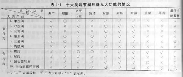 将每種閥具備的九大(dà)功能彙總在表1-1中。