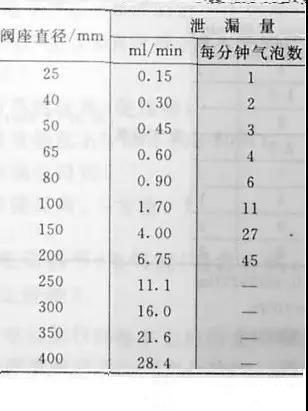 随閥座直徑變化,大(dà)允許洩漏量(ml/min或每分種氣泡數(shù))列于表1-4.