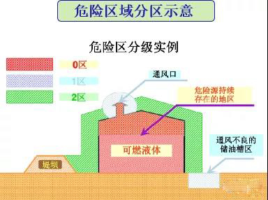爆炸性混合物出現的或預期可(kě)能出現的數(shù)量達到足以要求對電(diàn)氣設備的結構、安裝和(hé)使用采取預防措施的區(qū)域,為(wèi)爆炸危險區(qū)域。