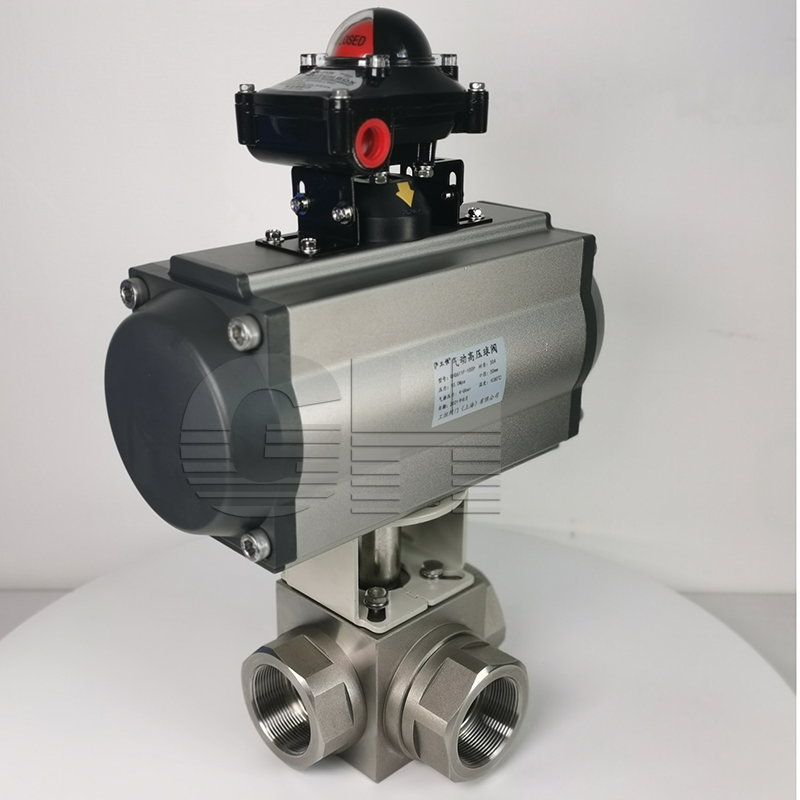 Q614F-100P三通(tōng)氣動高(gāo)壓球閥 氣動高(gāo)壓L型三通(tōng)球閥
