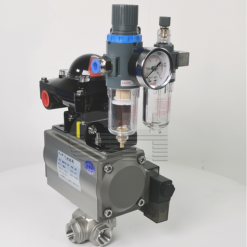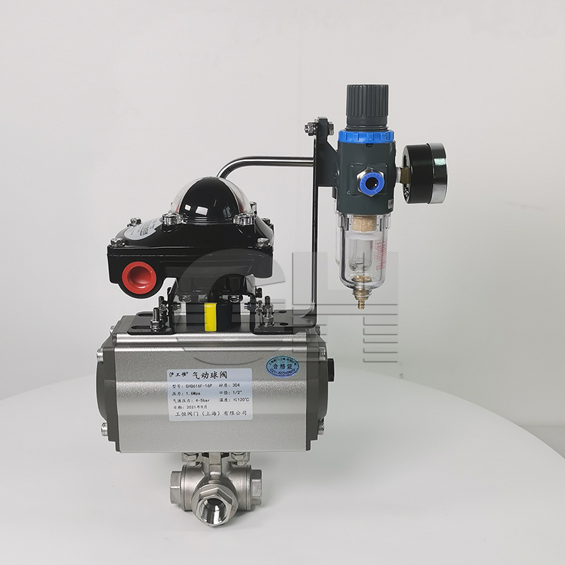 帶執行(xíng)器(qì)四通(tōng)球閥 氣動螺紋四通(tōng)球閥