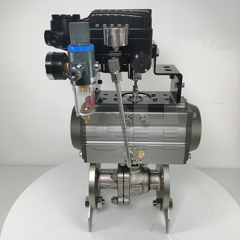 氣動法蘭球閥具有(yǒu)旋轉的90度動作(zuò),球有(yǒu)圓形通(tōng)孔通(tōng)過軸線,當球旋轉90度時(shí),在進、出口處應全部呈現球面,從而截斷流動,反之既呈現通(tōng)孔,使介質通(tōng)過。不鏽鋼氣動法蘭球閥生(shēng)産廠家(jiā),密封性能好,利用四面閥座材料聚四氟乙烯彈性變形實現無洩漏密封。全通(tōng)徑的不鏽鋼氣動法蘭球閥球體(tǐ)內(nèi)腔為(wèi)介質提供了阻力很(hěn)小(xiǎo)、直通(tōng)的流道(dào)。