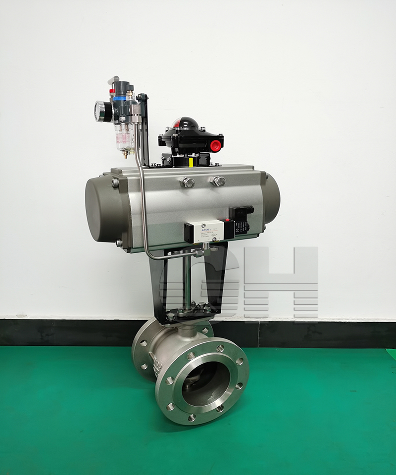 1.氣動V型球閥由V型閥體(tǐ)與氣動執行(xíng)機構及其它附件組成。是一種直角回轉結構的高(gāo)級控制(zhì)閥。