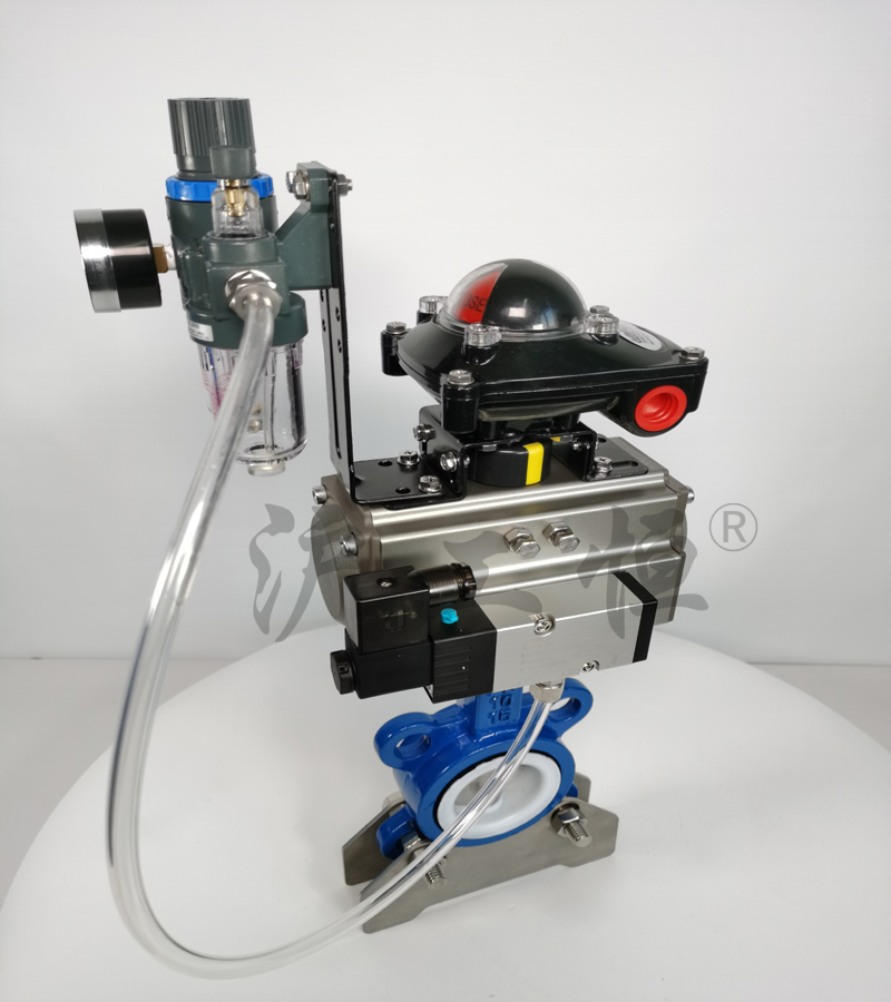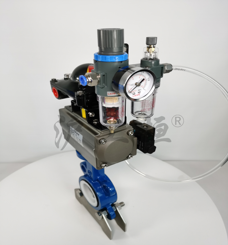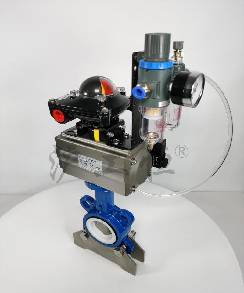 D671F-16Q鑄鐵(tiě)襯四氟氣動對夾式蝶閥