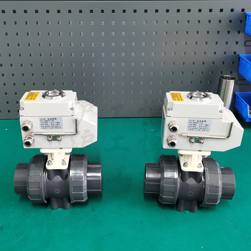 -電(diàn)動塑料球閥産品概述電(diàn)動塑料球閥是由電(diàn)動執行(xíng)器(qì)配以塑料球閥支撐,整體(tǐ)具有(yǒu)重量輕、耐腐蝕,應用于多(duō)個(gè)領域,如一般純水(shuǐ)和(hé)生(shēng)飲水(shuǐ)的管路系統、排水(shuǐ)和(hé)污水(shuǐ)管路系統、鹽水(shuǐ)和(hé)海水(shuǐ)管路系統、酸堿和(hé)化學溶液系統等多(duō)個(gè)行(xíng)業。電(diàn)動執行(xíng)器(qì)采用一體(tǐ)化設計(jì),輸入220V電(diàn)源便可(kě)直接進行(xíng)開(kāi)關量調節,亦可(kě)內(nèi)置伺服模塊,輸入控制(zhì)信号(4~20mADC或1~5VDC)及單相電(diàn)源便可(kě)控制(zhì)運轉。并且電(diàn)動塑料球閥得(de)品質得(de)到廣大(dà)用戶的青睐。upvc電(diàn)動球閥其主要特點如下: