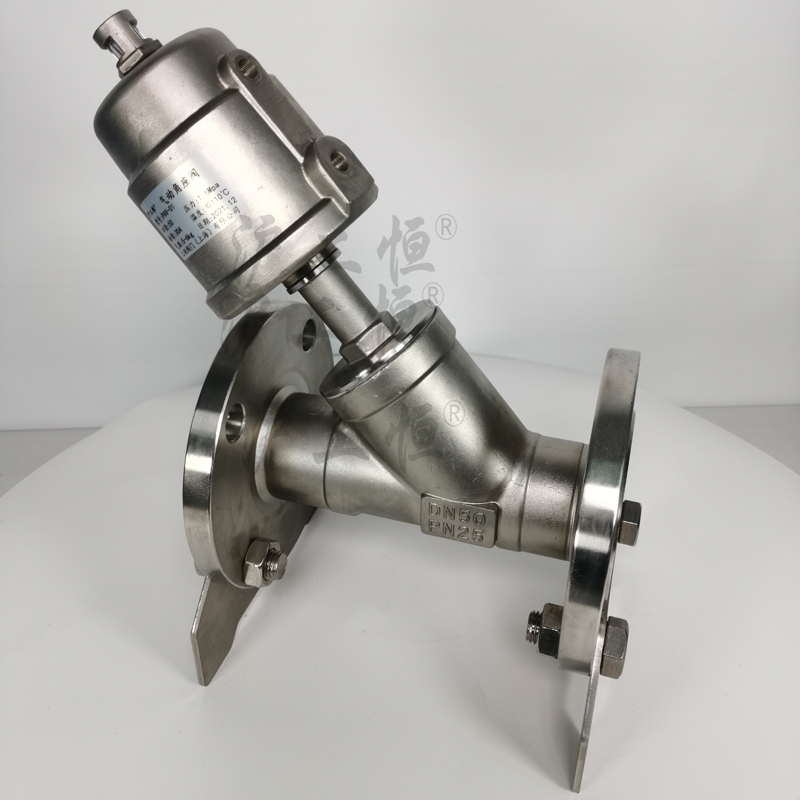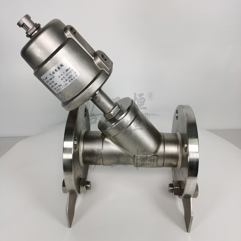 Y型不鏽鋼氣動角座閥在非工作(zuò)狀态時(shí),由于彈簧力作(zuò)用,閥門(mén)常閉(開(kāi))。當執行(xíng)器(qì)活塞被壓縮氣體(tǐ)作(zuò)用時(shí),閥門(mén)打開(kāi)(關閉)。雙作(zuò)用形式靠壓縮氣體(tǐ)控制(zhì)閥門(mén)開(kāi)關。