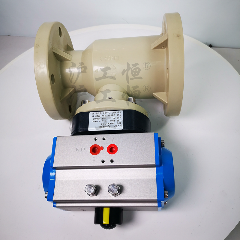 氣動UPVC法蘭球閥 氣動PP法蘭球閥氣動塑料法蘭球閥特點:氣動塑料法蘭球閥全部零件采用注塑件組裝成型,密封圈采用F4,耐腐性能優異,并且整體(tǐ)式洩漏點少(shǎo),強度高(gāo),轉動靈活、使用方便,使用壽命長。隻需通(tōng)過壓縮4-7mpa幹淨氣源,即可(kě)驅動球閥運轉,達到開(kāi)關作(zuò)用。裝如配上(shàng)閥門(mén)定位器(qì),接受4-20mA相關信号,即可(kě)用于控制(zhì)球閥開(kāi)度大(dà)小(xiǎo),從而達到對管路介質流量、壓力的調節!氣動塑料法蘭球閥技(jì)術(shù)參數(shù):