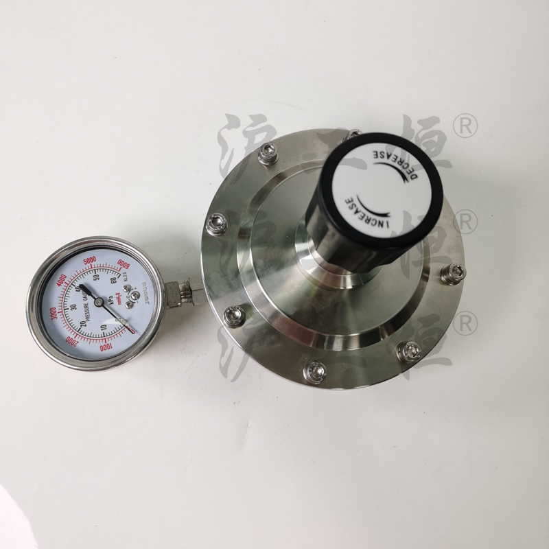 背壓閥的額定壓力可(kě)調節,一般通(tōng)過調節彈簧上(shàng)端的頂杆,從而調節彈簧的長度來(lái)實現。流體(tǐ)從背壓閥進口進入,被膜片阻擋,于是流體(tǐ)對膜片産生(shēng)向上(shàng)的壓力。當壓力足夠大(dà)時(shí),彈簧被壓縮,流體(tǐ)頂起膜片形成通(tōng)道(dào),從背壓閥出口流出;若流體(tǐ)壓力不夠,就會(huì)形成憋壓,使進口壓力上(shàng)升直到達到額定壓力,頂起膜片形成通(tōng)路。技(jì)術(shù)參數(shù):材質閥體(tǐ)、閥芯、彈簧座:SS304或316L不鏽鋼彈簧:65Mn(可(kě)定制(zhì)不鏽鋼)閥座O環:氟橡膠膜片:PTFE、NBR、氟橡膠(可(kě)根據要求定做(zuò))1、壓力感應形式:膜片式2、壓力表接口:1/4”NPT內(nèi)螺紋3、接口尺寸:1/8”~1”內(nèi)螺紋、法蘭、卡套、快裝等,可(kě)根據要求定做(zuò)4、工作(zuò)溫度:-20~140℃5、承受壓力:max. 6bar6、壓力調節範圍:0-30KPa;0-50KPa;0-100KPa大(dà)流量微壓背壓閥