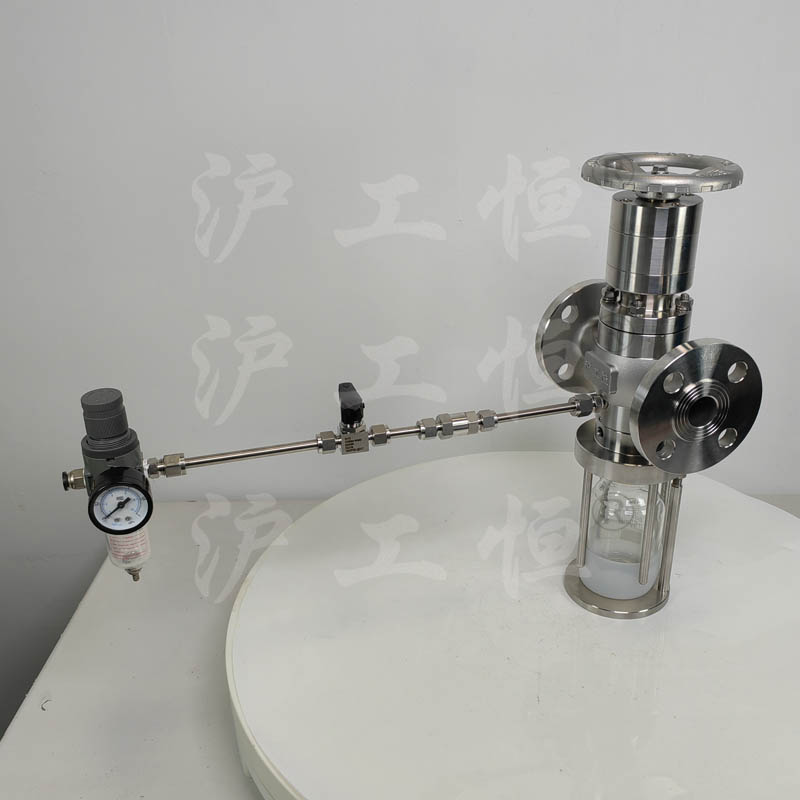 GHCSZXQYF-16帶有(yǒu)氮氣吹掃口在線取樣閥用于管線在線取樣,取樣介質真實, GHCSZXQYF-16帶有(yǒu)氮氣吹掃口在線取樣閥主要用于取粘稠介質,因粘稠介質的流動性差,特在取樣閥的出料口增設氮氣吹掃口,可(kě)将粘稠介質吹掃至取樣瓶內(nèi),提高(gāo)再次取樣的準确性,GHCSZXQYF-16帶有(yǒu)氮氣吹掃口在線取樣閥主要有(yǒu)閥體(tǐ)、閥芯、閥杆、閥座、排氣口,氮氣吹掃口、止回閥、吹掃球閥、取樣瓶組成,取樣瓶為(wèi)可(kě)拆卸設計(jì),試樣進入取樣瓶內(nèi),配套的瓶蓋可(kě)将取樣瓶密封,避免污染試樣,取樣閥流道(dào)無滞留、無流阻設計(jì),不影(yǐng)響流量,閥杆通(tōng)過手輪旋轉帶動閥杆及閥芯,閥芯上(shàng)下提拉,可(kě)精确控制(zhì)流量,精确控制(zhì)取樣量,使試樣進入取樣瓶內(nèi),取樣瓶可(kě)選透明(míng)和(hé)避光兩種,本取樣閥廣泛應用在制(zhì)藥、化工、食品行(xíng)業。