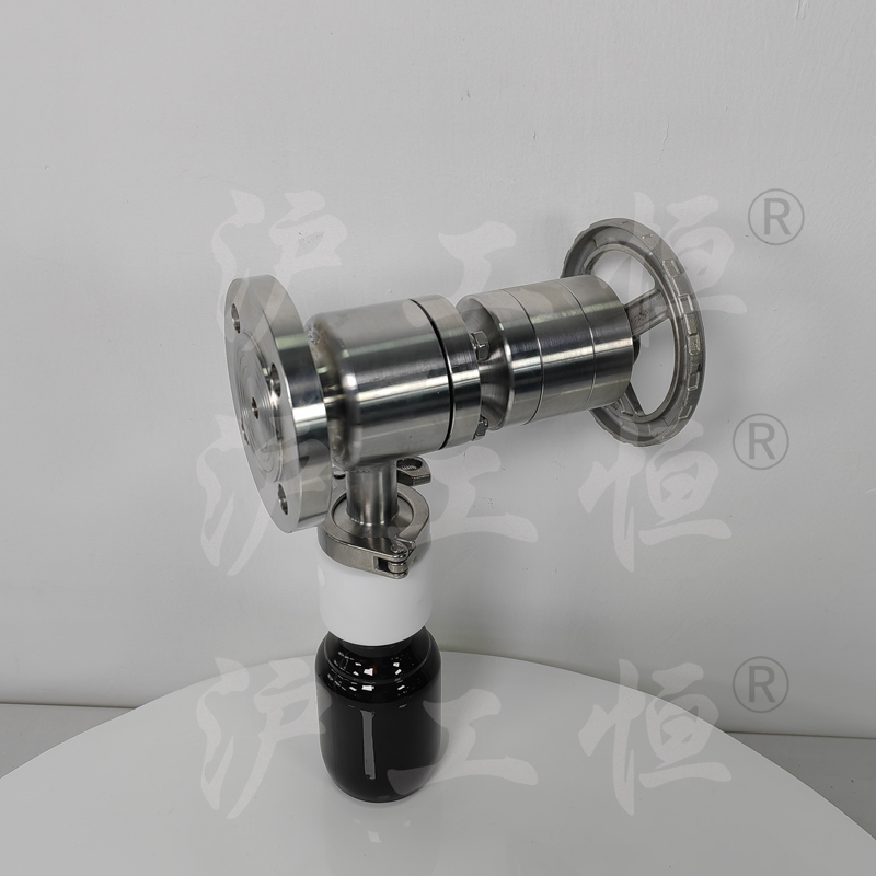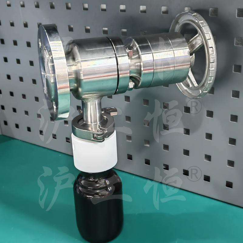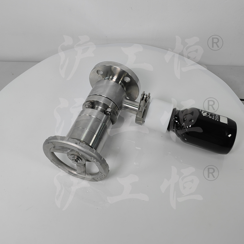 GHCSZXQYF-16帶有(yǒu)氮氣吹掃口在線取樣閥用于管線在線取樣,取樣介質真實, GHCSZXQYF-16帶有(yǒu)氮氣吹掃口在線取樣閥主要用于取粘稠介質,因粘稠介質的流動性差,特在取樣閥的出料口增設氮氣吹掃口,可(kě)将粘稠介質吹掃至取樣瓶內(nèi),提高(gāo)再次取樣的準确性,GHCSZXQYF-16帶有(yǒu)氮氣吹掃口在線取樣閥主要有(yǒu)閥體(tǐ)、閥芯、閥杆、閥座、排氣口,氮氣吹掃口、止回閥、吹掃球閥、取樣瓶組成,取樣瓶為(wèi)可(kě)拆卸設計(jì),試樣進入取樣瓶內(nèi),配套的瓶蓋可(kě)将取樣瓶密封,避免污染試樣,取樣閥流道(dào)無滞留、無流阻設計(jì),不影(yǐng)響流量,閥杆通(tōng)過手輪旋轉帶動閥杆及閥芯,閥芯上(shàng)下提拉,可(kě)精确控制(zhì)流量,精确控制(zhì)取樣量,使試樣進入取樣瓶內(nèi),取樣瓶可(kě)選透明(míng)和(hé)避光兩種,本取樣閥廣泛應用在制(zhì)藥、化工、食品行(xíng)業。